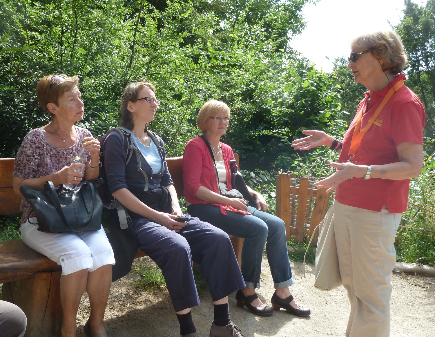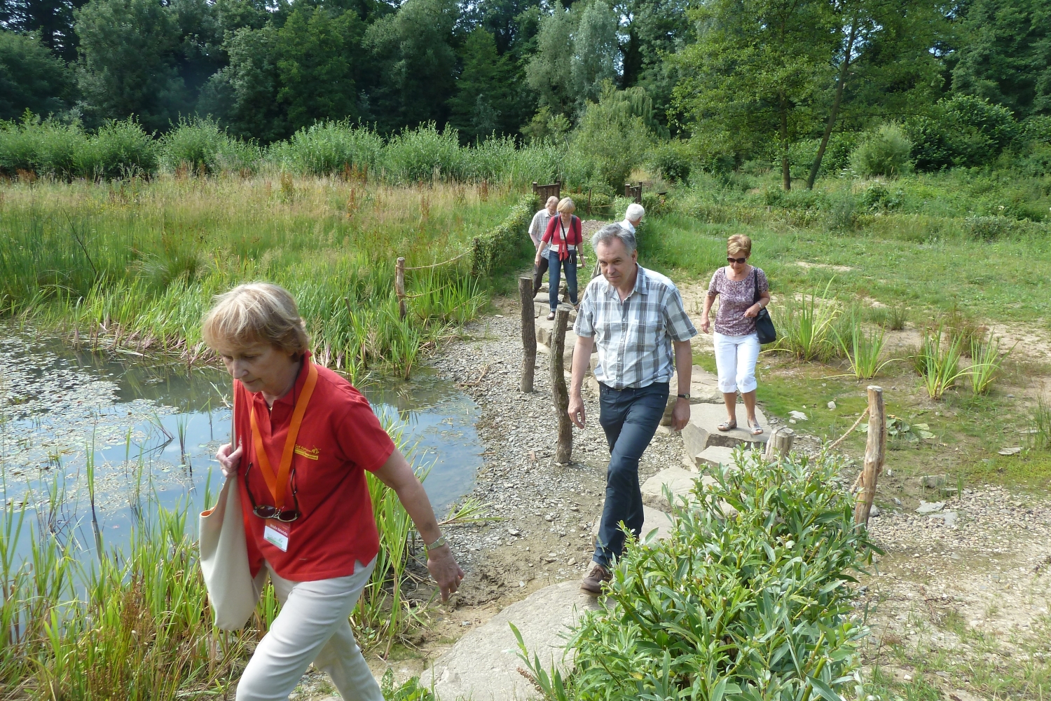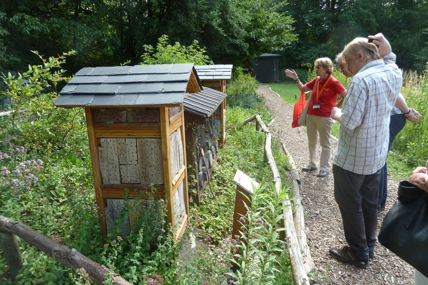 Durch eine ehrenamtliche Mitarbeiterin des Fördervereins erhielten wir zunächst eine Führung über das wunderschöne, sechs Hektar große Gelände mit Wiesen, Gärten, Naturerlebnispfad, Tümpeln und Teichen. Anschließend konnten wir uns im Bistro des NaturGutes stärken. Danach informierte uns der Geschäftsführer, Herr Dr. Kochanek, über die Entstehungsgeschichte, die Ziele und aktuellen Schwerpunkte des Projekts. Die Kreativität und Power, mit der sich das Projekt seit 1984 von einem kleinen Verein zu einem Zentrum der Umweltbildung entwickelt hat und heute Bildung für Umwelt und Klimaschutzt auf höchstem Niveau betreibt, ist beeindruckend.